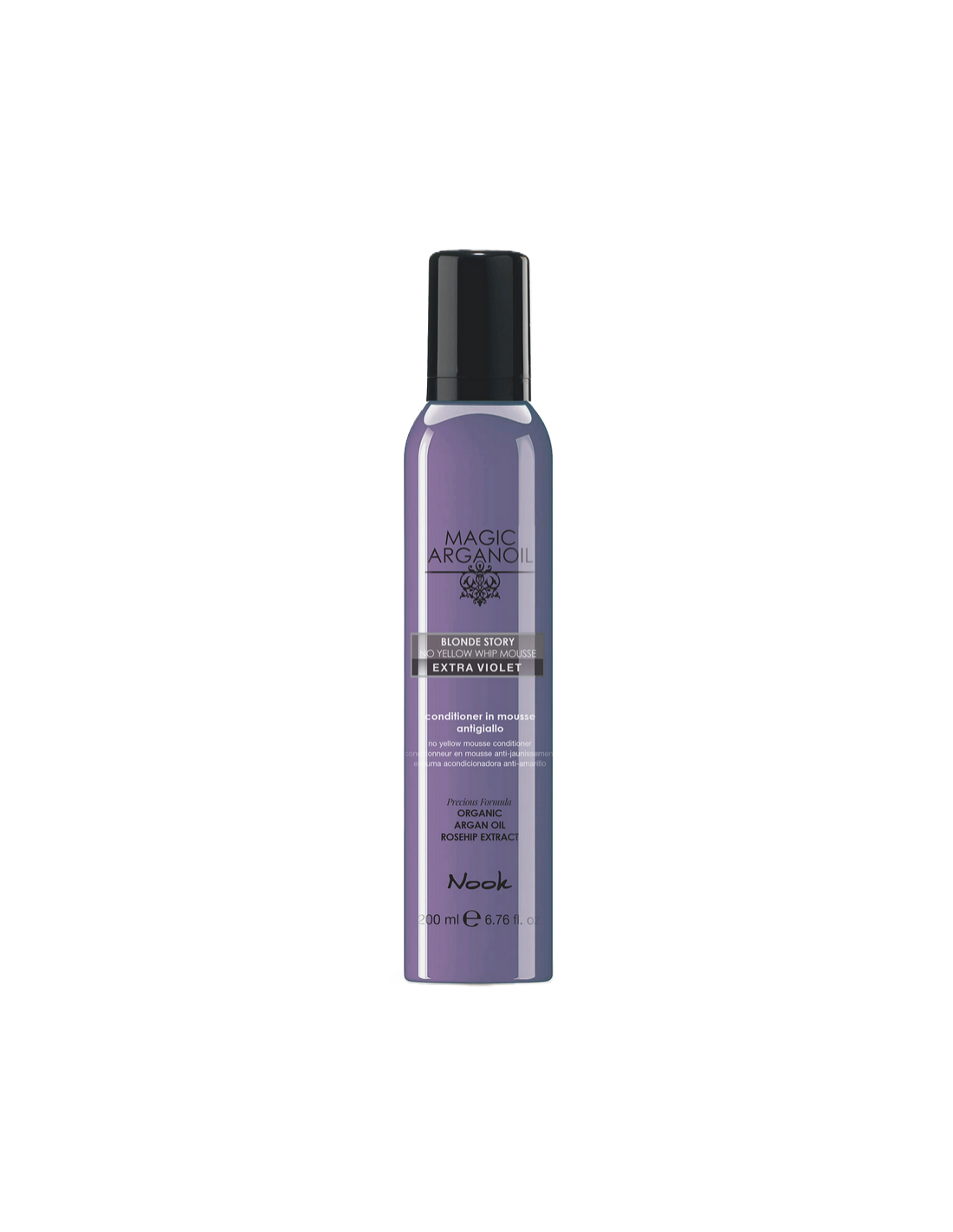 Il Blonde Story Conditioner Mousse di Nook Magic Arganoil è un trattamento condizionante in mousse specifico per capelli biondi, decolorati o grigi. Grazie alla sua formula antigiallo, aiuta a neutralizzare i riflessi indesiderati, mantenendo un biondo luminoso, freddo e uniforme. La texture soffice e leggera idrata e protegge senza appesantire, lasciando i capelli morbidi e setosi.