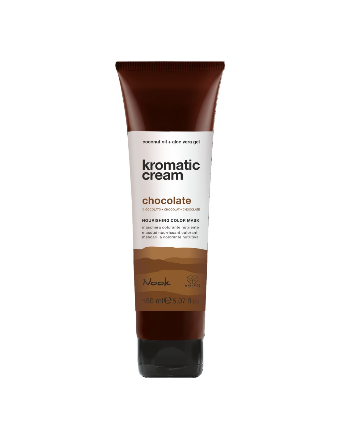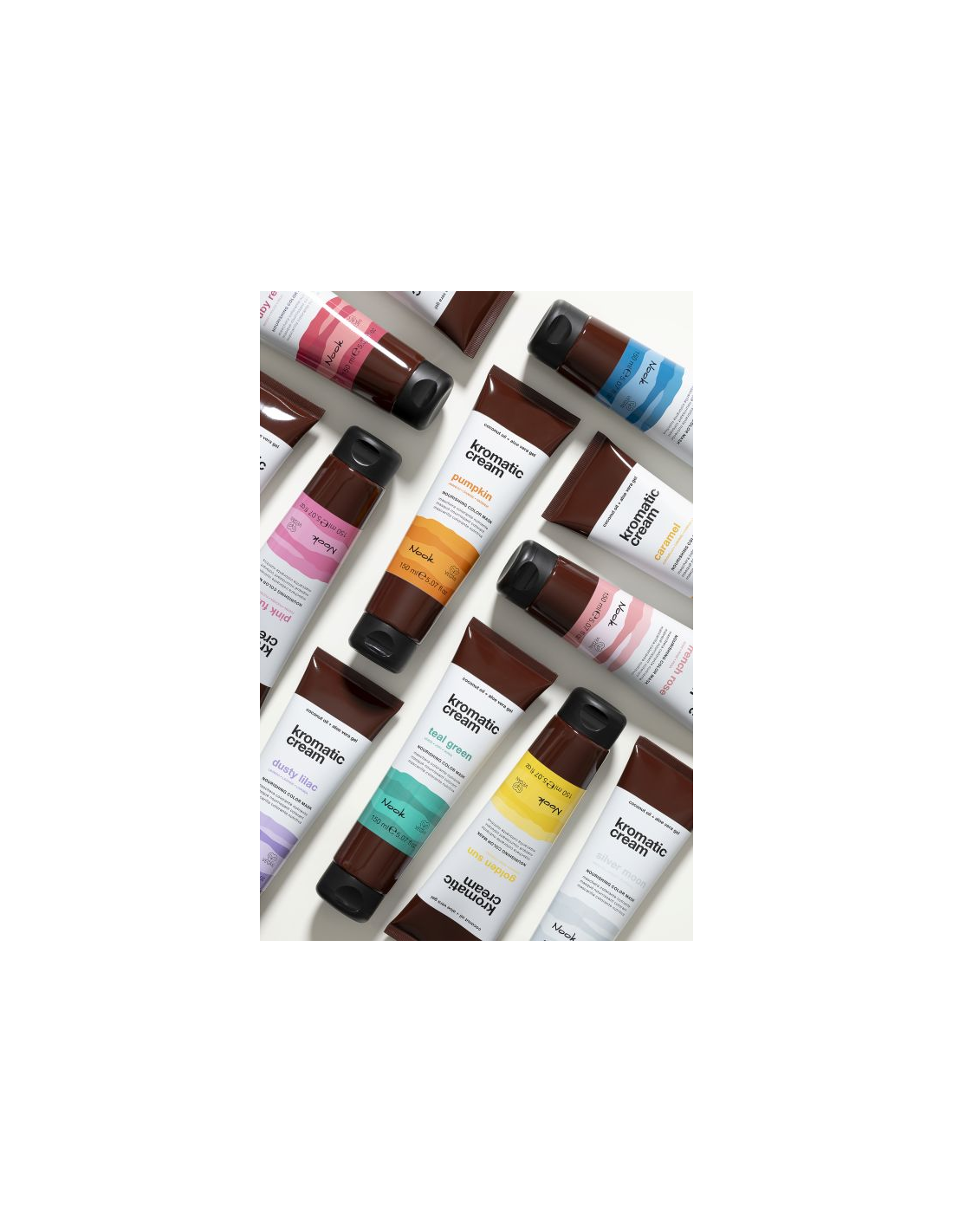 Kromatic Cream è la nuova linea Vegan di maschere colorate di Nook, pensata per offrire colore e trattamento in un unico gesto. Grazie alla sua formula a pH acido con pigmenti diretti, dona riflessi intensi, vibranti e personalizzabili, mentre rigenera e illumina la fibra capillare.