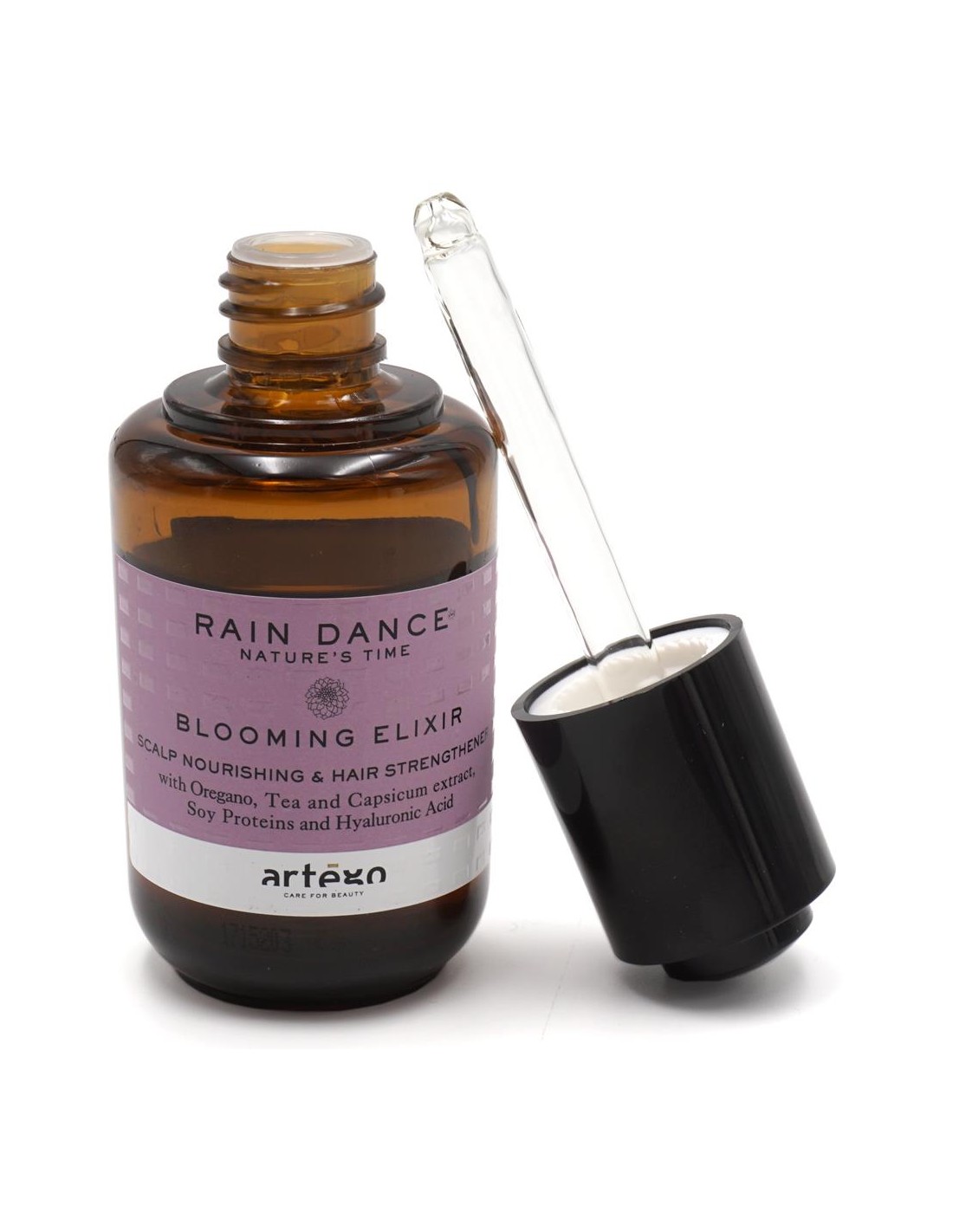 Blooming Elixir di Rain Dance è un siero stimolante che darà benefici notevoli ai tuoi capelli: crescita più veloce, ispessimento dello stelo dei capelli e maggiore stimolazione dei follicoli piliferi sono le caratteristiche più importanti di questo mix di ingredienti biologici e botanici.