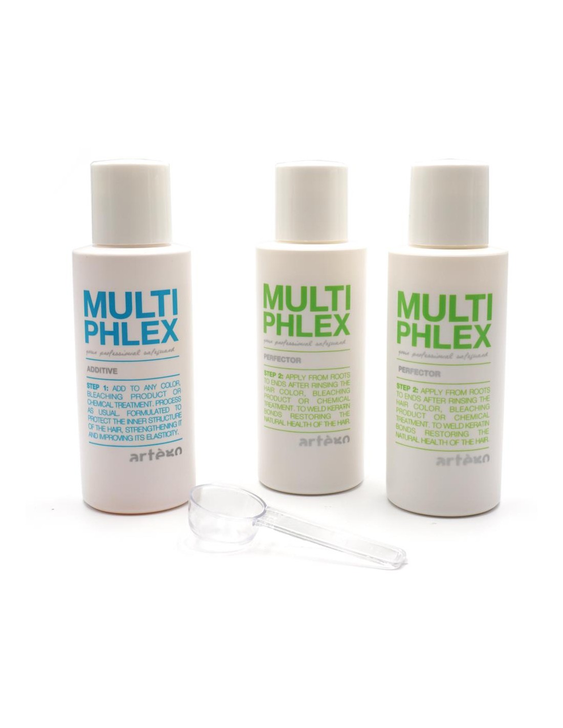Rispettare le dosi indicate e la sequenza dei passaggi: miscelare i colori e/o decoloranti Artègo con i relativi attivatori; aggiungere la quantità necessaria di Multiphlex Additive; miscelare il tutto; applicare e attenersi ai tempi del servizio; risciacquare. Successivamente, applicare Multiphlex Perfector e attenersi ai tempi di posa; procedere con risciacquo finale e lavaggio