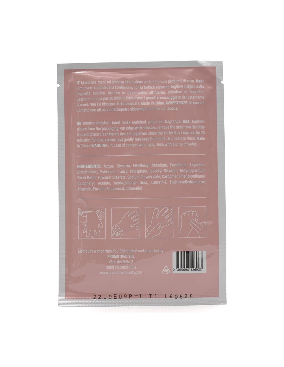 Rimuovi i guanti dalla bustina, separali, togli il sigillo dalla linguetta adesiva e inserisci la mano all'interno del guanto, chiudi la linguetta. Lascialo in posa 20 minuti. Dopodiché rimuovi il guanto e massaggia delicatamente fino a completo assorbimento, non è necessario risciacquare.