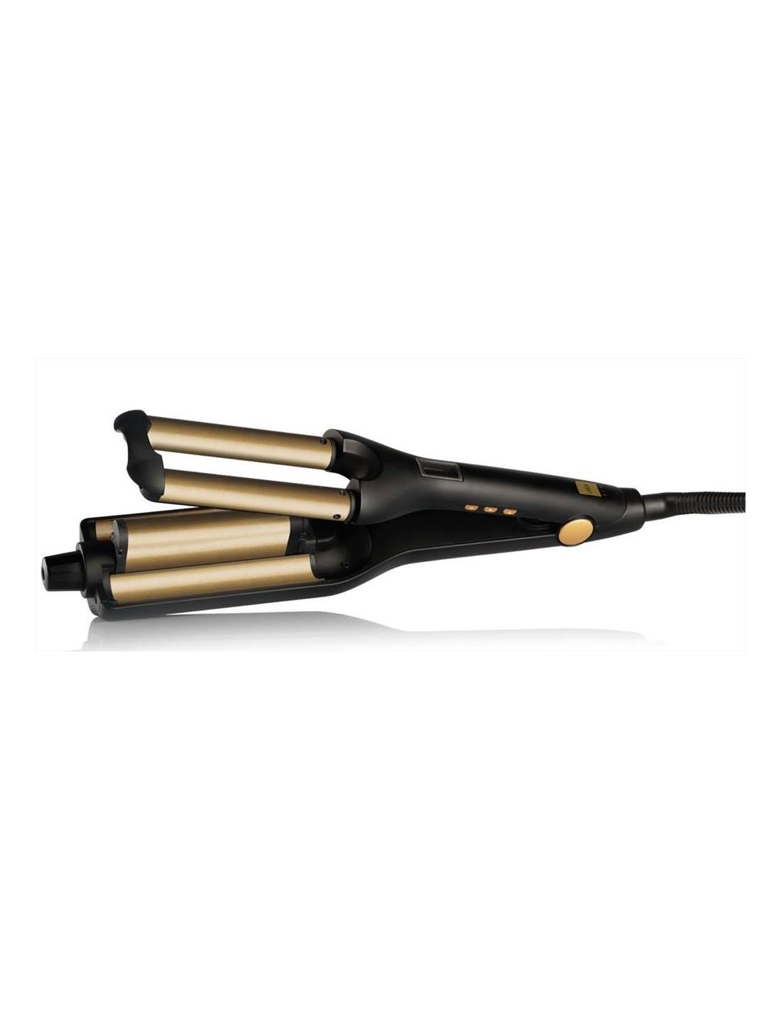 Piastra onda professionale Multi Wave con profondità onda regolabile manualmente a 5 altezze per creare acconciature con onde di altezza differente, le barre sono in titanio rivestite in ceramica tourmaline per assicurare una distribuzione omogenea del calore. La punta antiscottatura permette di manovrare la piastra onda in tutta sicurezza. Dal display digitale è facile regolare la temperatura, la piastra onda Multi Wave raggiunge una temperatura massima di 230°C. Dopo 60 minuti di inutilizzo la piastra si spegne automaticamente. Il cavo girevole agevola il lavoro si styling. Colore: oro.