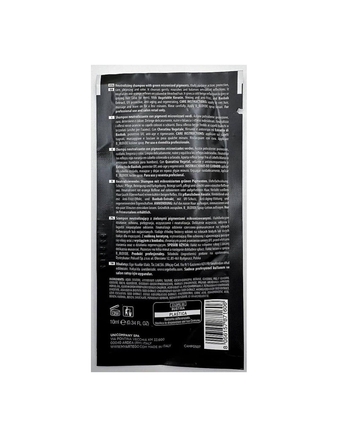 B_Blonde Green No Red Shampoo). Riflesso beige freddo su capelli bianchi o