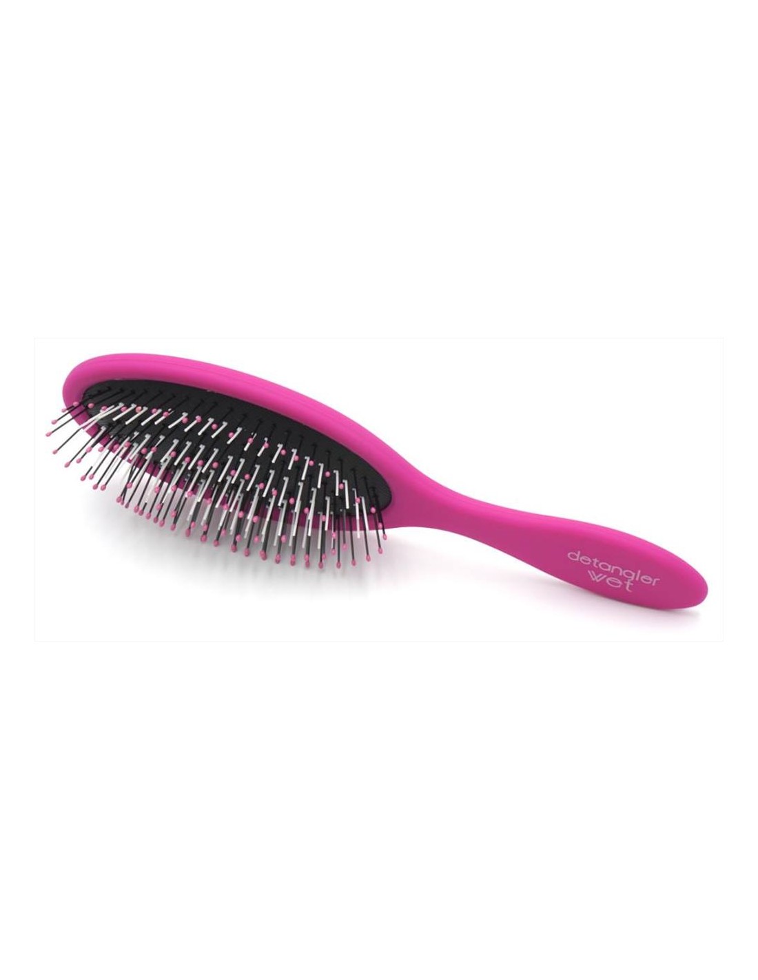 Spazzola pneumatica scioglinodo agli ioni DETANGLER Districa facilmente tutti i tipi di capelli e grazie alle proprietà degli ioni elimina il crespo e rende i capelli più morbidi e luminosi . Il cuscino in gomma rende il tutto più piacevole e confortevole senza strappare i capelli.