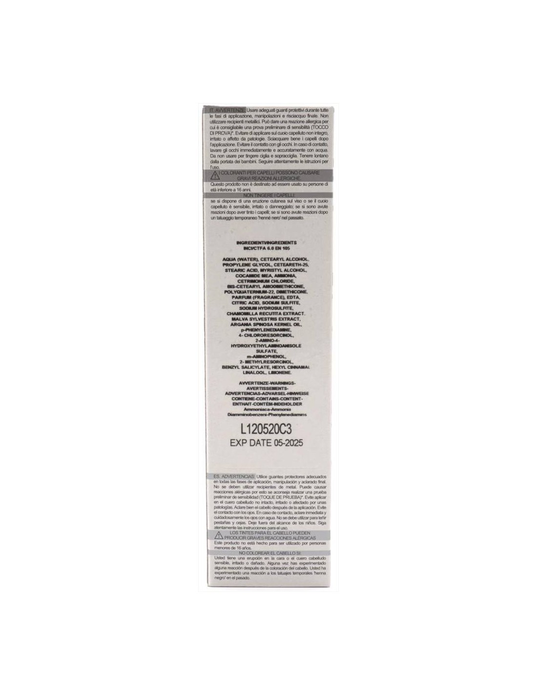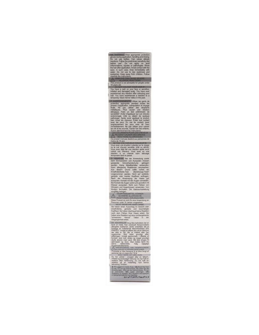 Contiene resorcina e parafenilendiammina; prima di utlizzare qualsiasi tintura per capelli fai un test da contatto per stabilire se il tuo organismo è compatibile, così potrai scongiurare possibili reazioni allergiche.