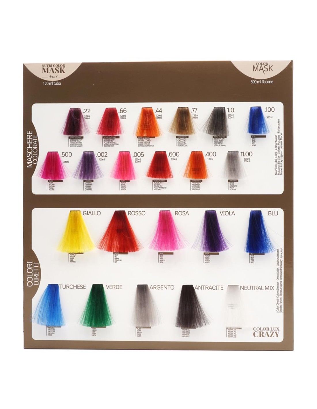 Ti consigliamo di adattare il colore della maschera rispetto al colore dei tuoi capelli, ricordati che un rosa non potrà mai vedersi su una base scura, non noterai nemmeno i riflessi, su una base scura può andare bene sia il cioccolato che il viola, tenenedo sempre presente che ciò che andrai ad ottenere sarà una semplice riflessatura. Diverso è il caso in cui il tuo capello sia biondo platino ( in pratica bianco), su questa base potrai utilizzare qualsiasi colore e lo vedrai tale e quale al colore scelto.